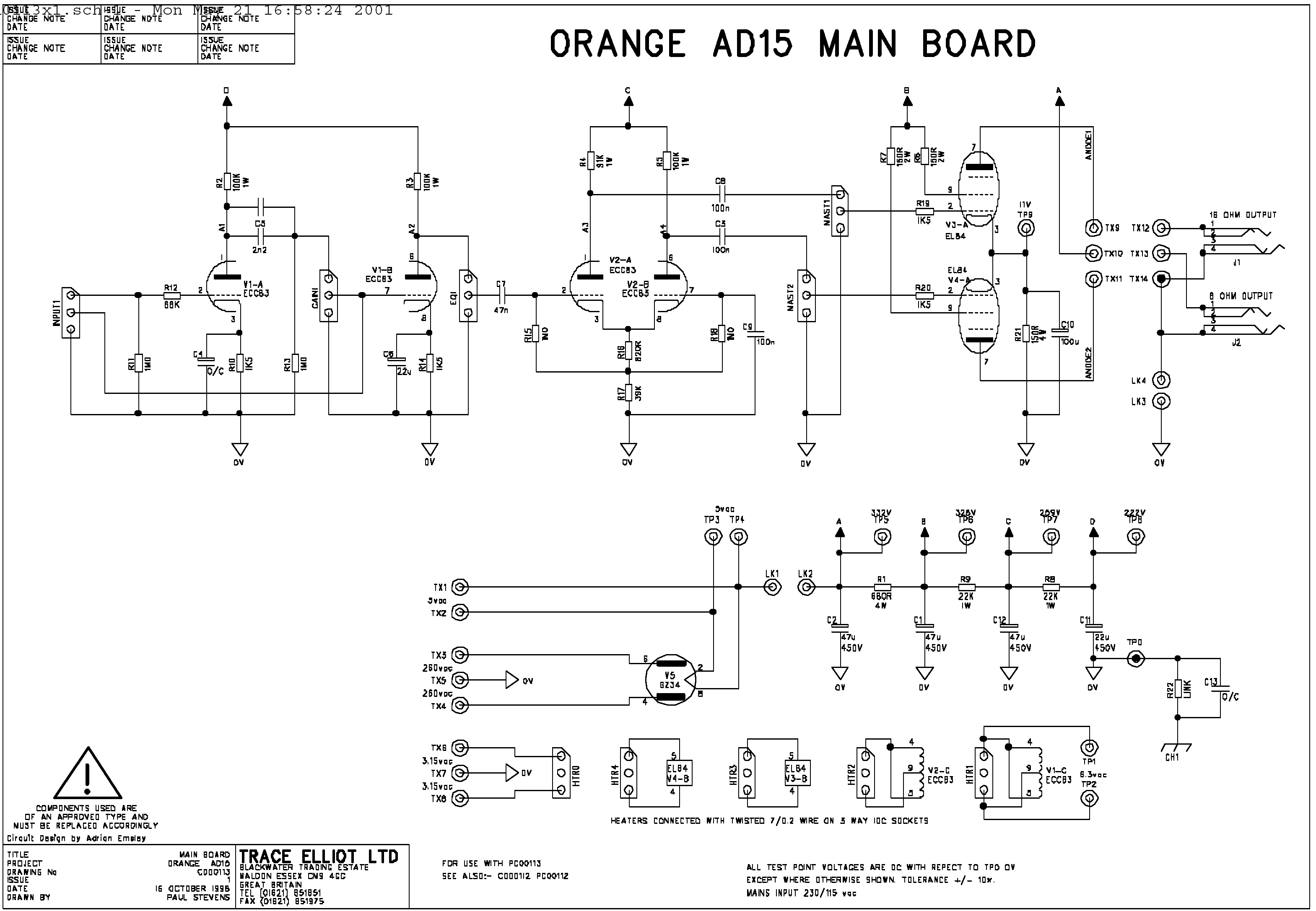 | AD15 schematic by Trace Elliott | AD15 main schematic | shared by Richard Dennerline, donated by Sooner |